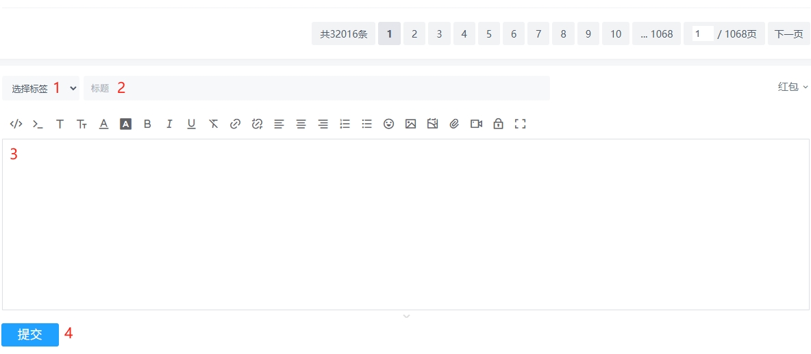 首页下拉到底部,看到这个编辑区域,按序号填写内容提交,就发布了帖子