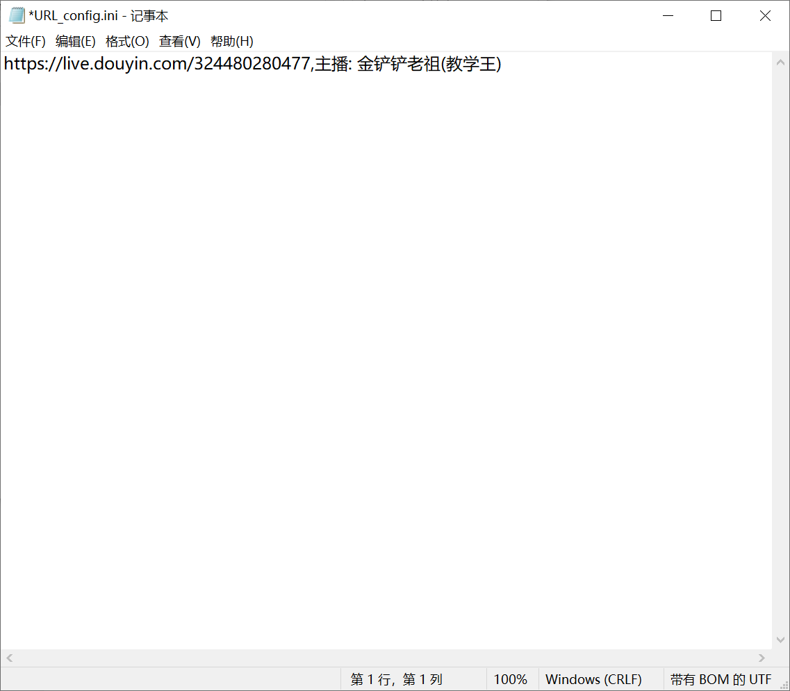软件设计简洁,无需安装。操作第一步是进入“config”文件夹,双击打开“URL_config.ini”文件,把需要录制的直播间链接粘贴进去,并点击保存。该软件支持同时录制多个直播间的内容。