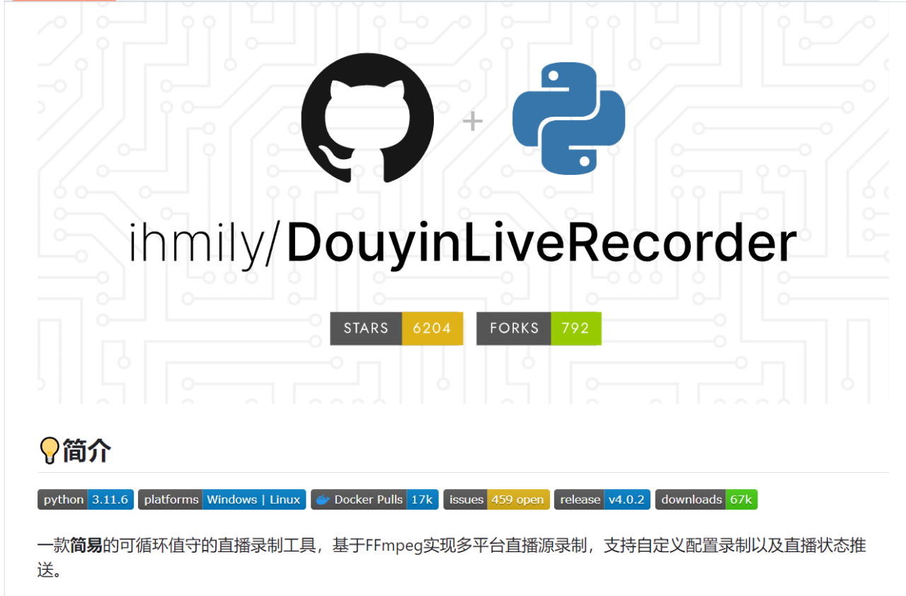 这款开源免费软件可以录制抖音、快手、哔哩哔哩、斗鱼、虎牙以及小红书等近50个平台的内容。为了更好地使用,请先查看作者提供的使用说明。