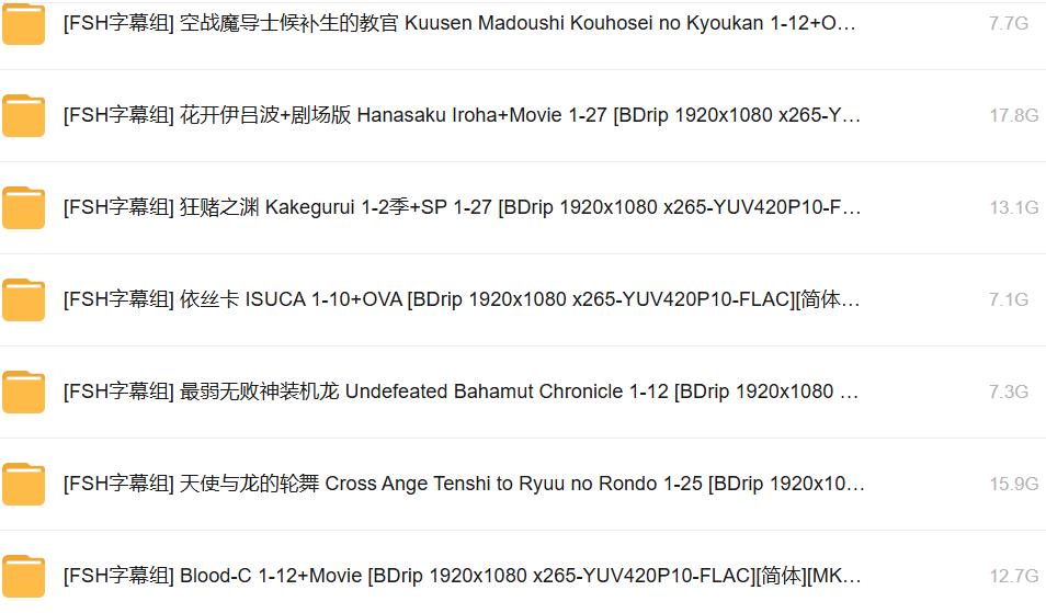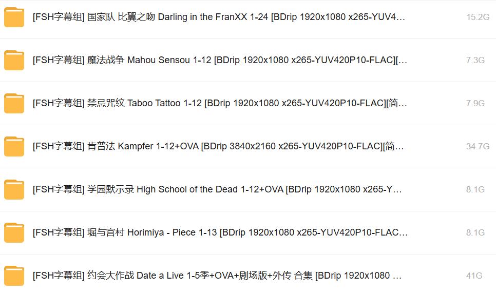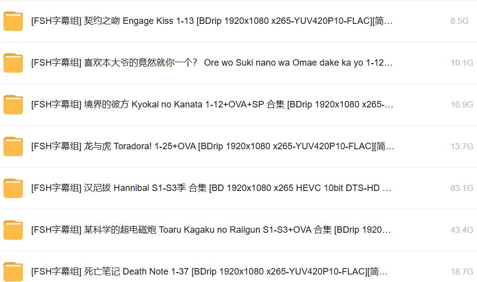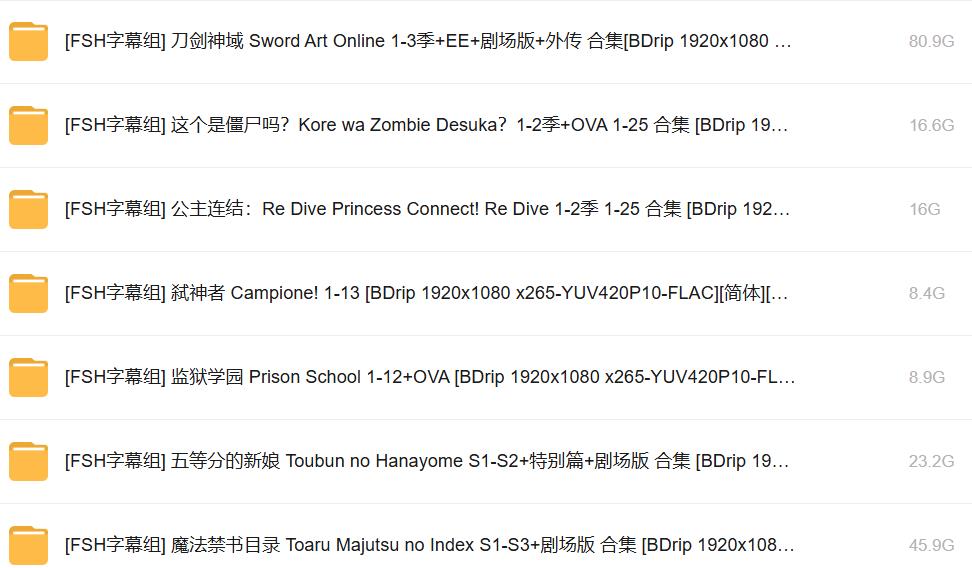- 【日漫合集】FSH字幕组合集.BDrip 1920x1080 x265-YUV420P10-FLAC[内嵌简体中字]内含159部没有和谐番(更新中)【2.28TB】V2